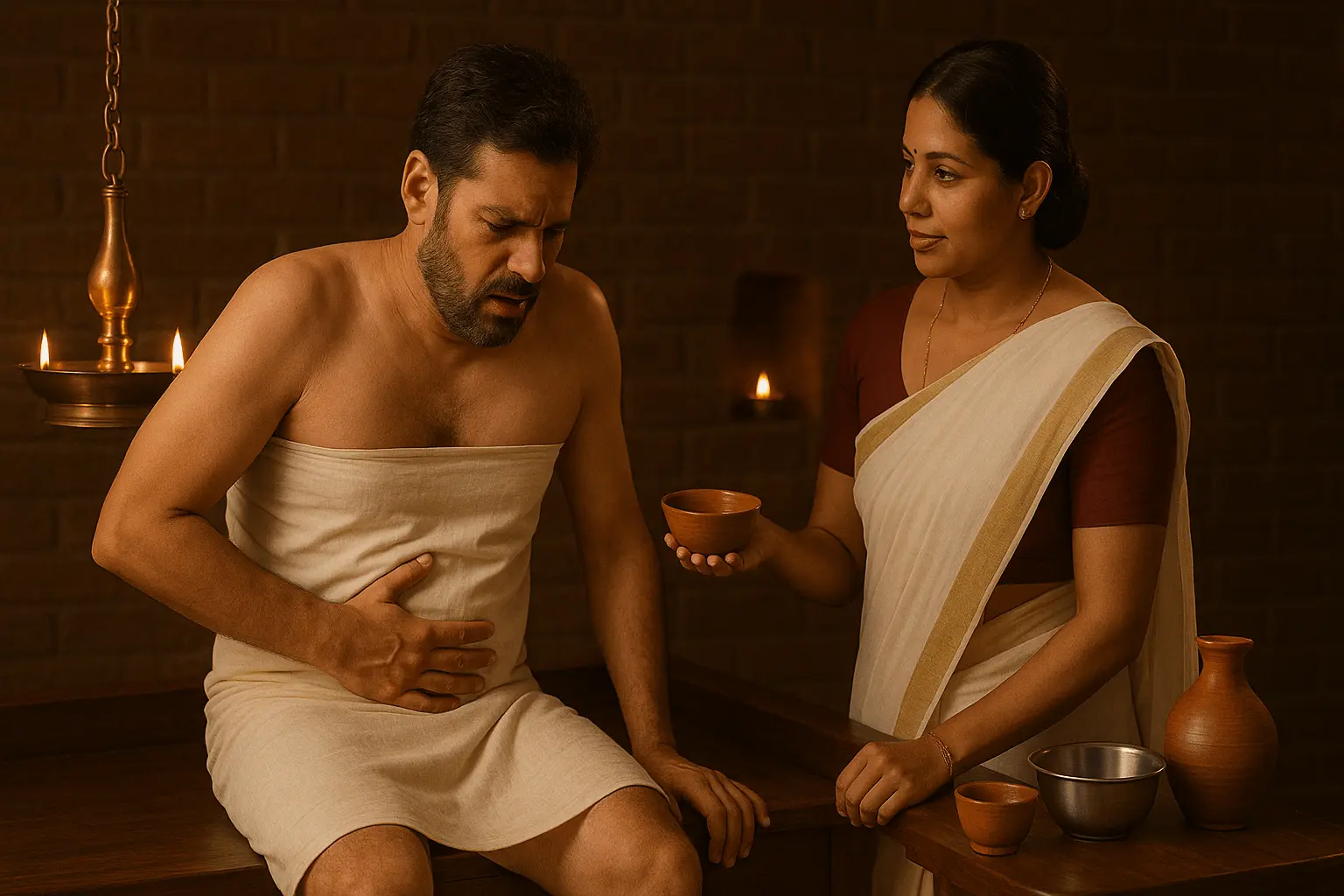 Vamana karma is known as therapeutic emesis. It is one of the five panchakarma procedures in which doshas are eliminated through the upper route. This is done in both preventive and therapeutic purposes. Medicines are given orally to induce vomiting early in the morning.